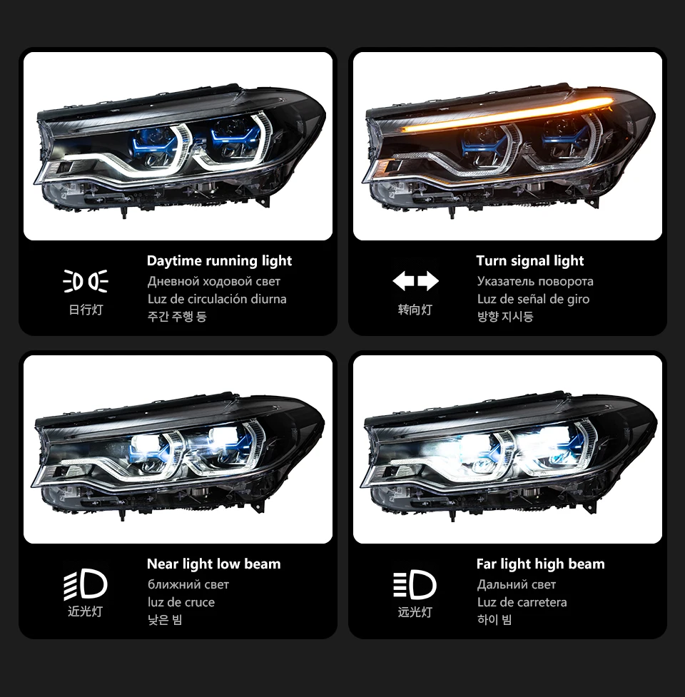 Фари повністю сумісні з оригінальними кріпленнями та електричними роз'ємами BMW 5 серії G30/G38/F90. Виготовлені з високоякісних матеріалів та відповідають міжнародним стандартам сертифікації CCC, DOT, ISO9001 та E-Mark.eBay+1OLX+1