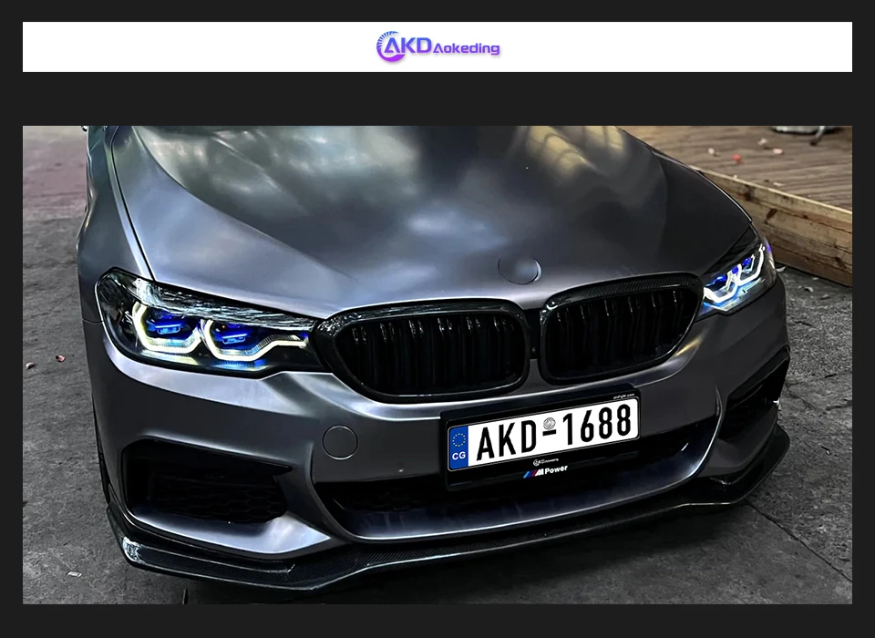 Пропонуємо комплект світлодіодних передніх фар AKD для BMW 5 серії G30/G38/F90 (2017–2020). Ці фари надають вашому автомобілю сучасного та стильного вигляду, покращуючи освітлення та безпеку на дорозі. Інтегровані денні ходові вогні (DRL), яскраве ближнє та дальнє світло, а також динамічні покажчики повороту забезпечують чудову видимість за будь-яких умов.