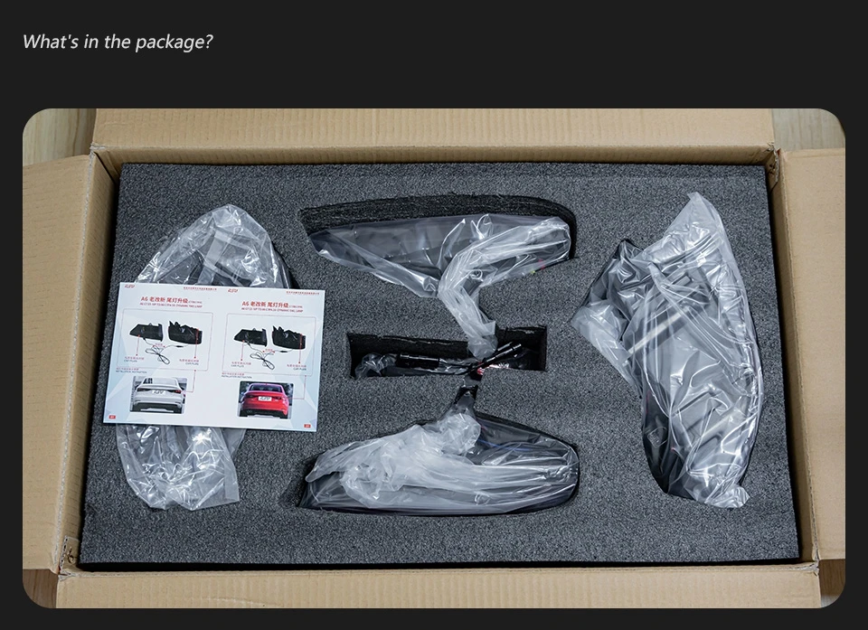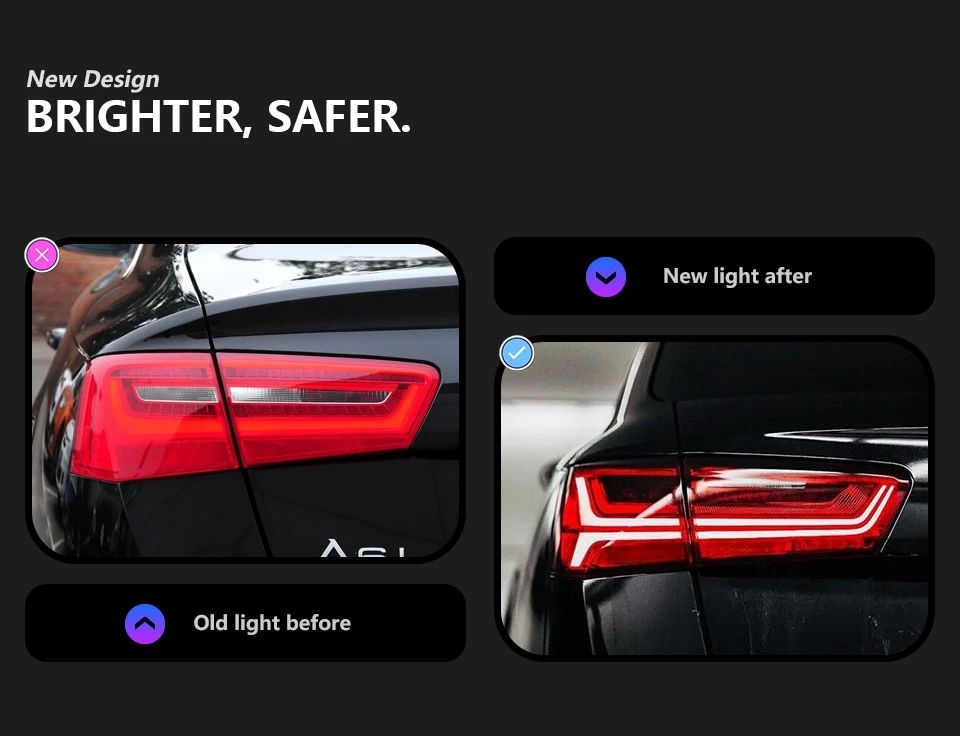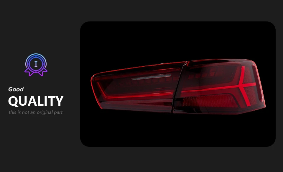 Класичний комплект LED-задніх ліхтарів з DRL, динамічними покажчиками, стоп-сигналом та лампами заднього ходу — стильне оновлення для Audi A6L (седан/універсал) 2012–2016 років. Преміальна елегантність і підвищена безпека.